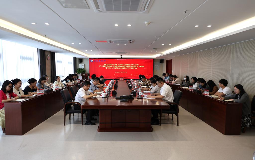 3月27日,阳江校区机关联合党支部召开学习贯彻全国两会精神暨开展深入贯彻中央八项规定精神学习教育动员部署会议。机关联合党支部书记白浚宇主持会议,校区党委副书记丁永成、支部全体党员及入党积极分子参加会议。