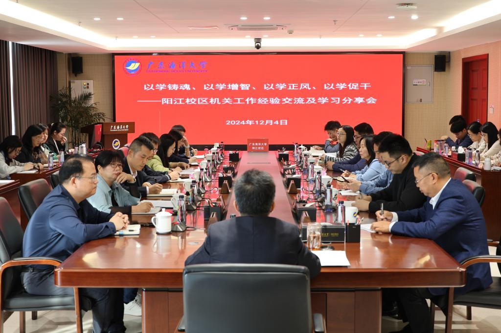 为深入学习贯彻党的二十届三中全会精神,落实学校党建与思想政治工作会议部署,12月4日上午,阳江校区在海纳楼712会议室召开机关工作经验交流与学习分享会,推动校区机关党员干部切实做到以学铸魂、以学增智、以学正风、以学促干,进一步推动校区的高质量发展。校区党委副书记丁永成主持会议。校区党委副书记陈永强以及校区全体机关、教辅单位人员参加会议。
