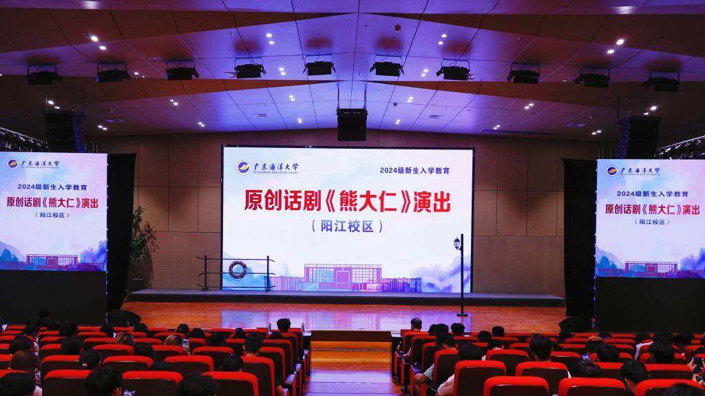 10月16日下午,由校区学生事务部主办的阳江校区2024级新生入学教育——“我与海大共奋进”系列主题教育之话剧《熊大仁》演出活动在海纳楼113报告厅举行。校区党委副书记陈永强,各部门、各学院负责人以及2024级所有新生现场观看了演出。