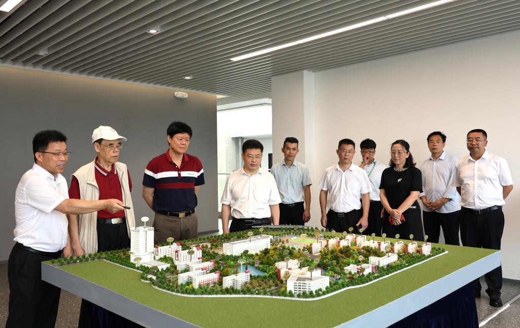 在厚为楼16楼展厅,老领导们参观了校区二期建设沙盘,了解了阳江校区建设情况和规划图景。随后,走访了机械与能源工程学院、海上风电产业学院、食品科学与工程学院、商学院和校区图书馆,实地考察了校区科研平台、教学设施等方面建设情况。