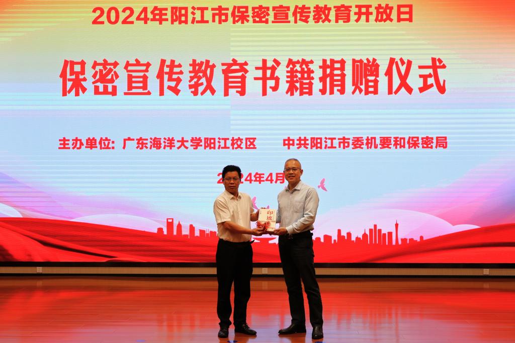 4月10日下午,校区联合阳江市委政法委、市委国安办、市委机要和保密局、市国家安全局、市公安局、团市委等多个部门在海纳楼113报告厅举办了“4·15”全民国家安全教育日活动。阳江校区党委副书记丁永成主持活动。市委机要和保密局局长谭羡、副局长李孟基、邱华基,市国家安全局相关支队领导,市公安局支队长申鸿鹏,副支队长李儒侠、黄元锋,大队长陈一玲,各学院党总支书记以及校区全体辅导员和学生代表共500多人参加。