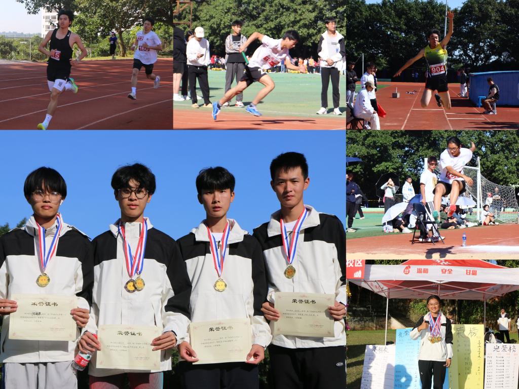 本次校运会阳江校区共派出学生运动员38名,包括25名男生运动员和13名女生运动员。代表队参加个人项目、集体项目共计24个,其中获奖项目20个,前三名获奖项目14个,成绩斐然。其中,金牌获奖项目有男子4×100米接力、男子4×400米接力、女子4×100米接力、男子100米、男子铅球、男子跳远和女子铅球;银牌获奖项目有16×30米抱球接力(混)、男子400米、男子200米、女子跳远、女子800米;铜牌获奖项目有男子1500米、男子800米、女子一分钟仰卧起坐;前八名获奖项目有男子400米(第四、五名)、男子跳高(第五名)、男子跳远(第四名)、女子200米(第五名)、女子400米(第六名)、女子1500米(第六名)、女子三级跳远(第四名)。