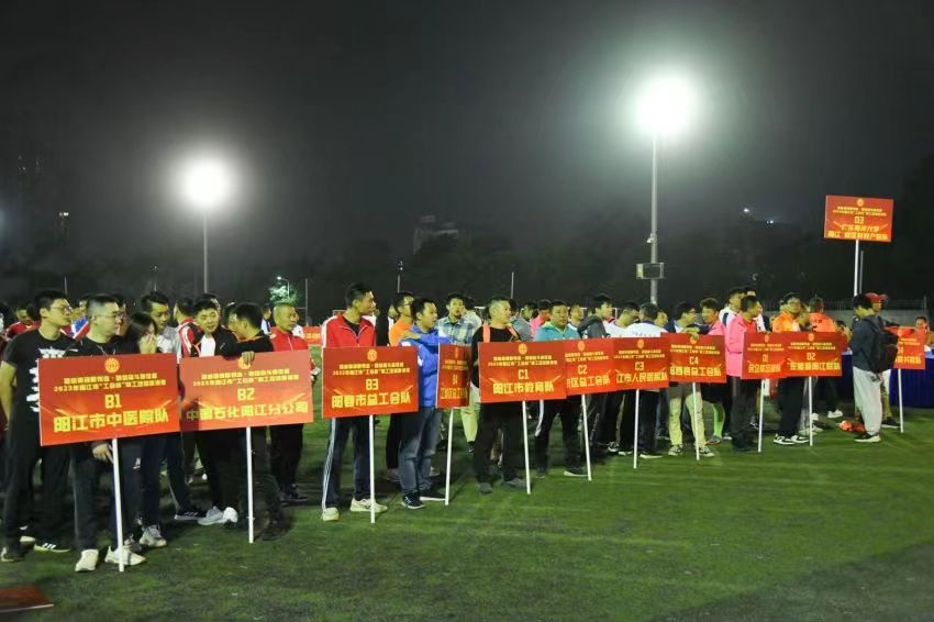 为贯彻落实中国工会十八大精神,响应积极、健康、向上的生活方式,推动全民体育深入发展,校区教职工足球队于12月12日晚在阳江市体育馆中心足球场参加了以“凝心铸魂跟党走 团结奋斗新征程”为主题的阳江市“工会杯”职工足球邀请赛的开幕仪式,机械与能源工程学院书记、院长、领队陈扬枝教授,校区工会文体委员、教练潘际娜,队长刘炳尧以及足球队成员代表参加了开幕式。