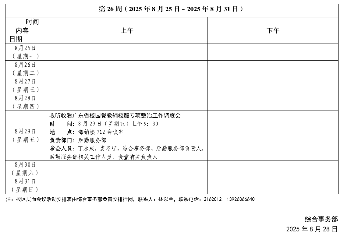 2024~2025学年第二学期第26周会议活动安排表